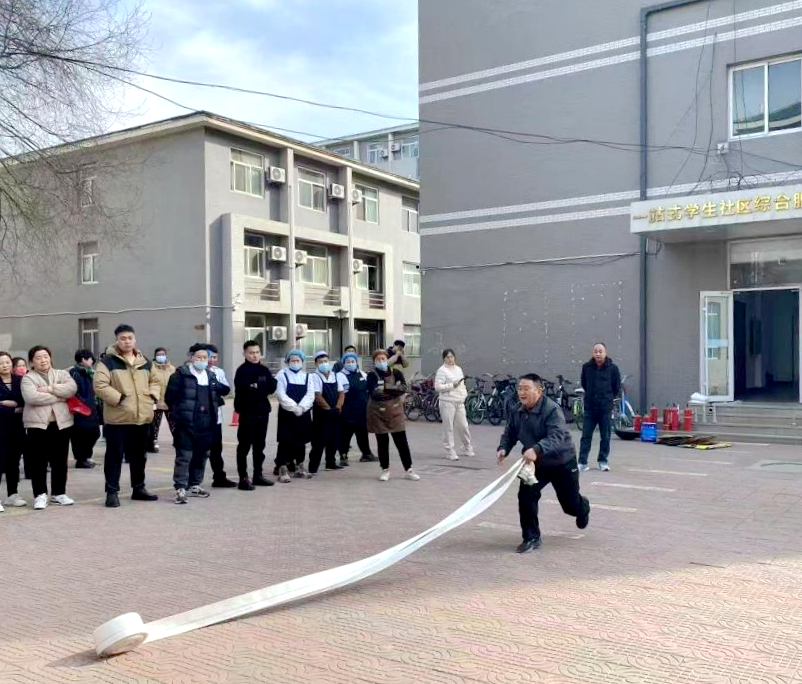 在实训场,随着模拟烟雾升腾,实战演练正式拉开帷幕。消防专业人员现场演示灭火器"提、拔、握、压"四步操作要诀,指导参训人员分组进行干粉灭火器实操。面对熊熊燃烧的火源,食堂员工李师傅规范完成灭火器操作,赢得阵阵掌声。在消防水带连接使用环节,公寓员工迅速准确地进行了消防水带的连接和灭火操作。参训人员还轮番体验了紧急疏散、报警联动等内容。